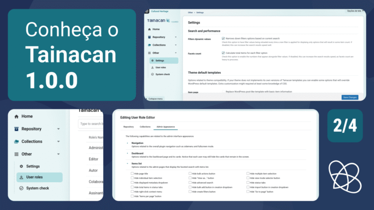 Conheça o Tainacan 1.0 – Parte 2: Tela de Configurações do Plugin e Ajustes de Aparência por Função de Usuário