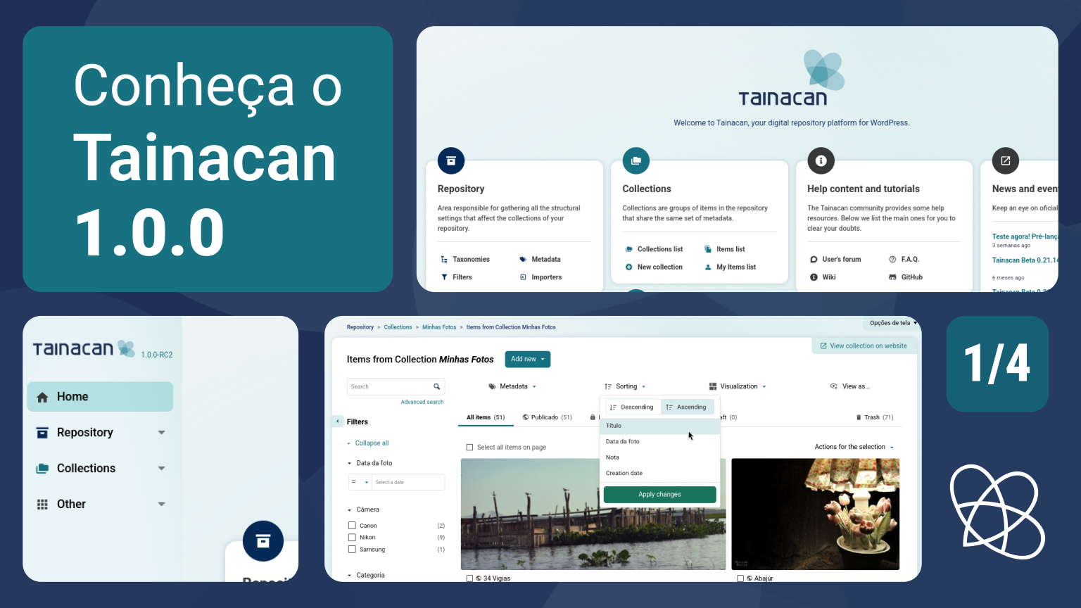 Este é o primeiro de uma série de quatro artigos pré-lançamento tratando das novidades do Tainacan 1.0.0. Não deixe de ler os outros três: